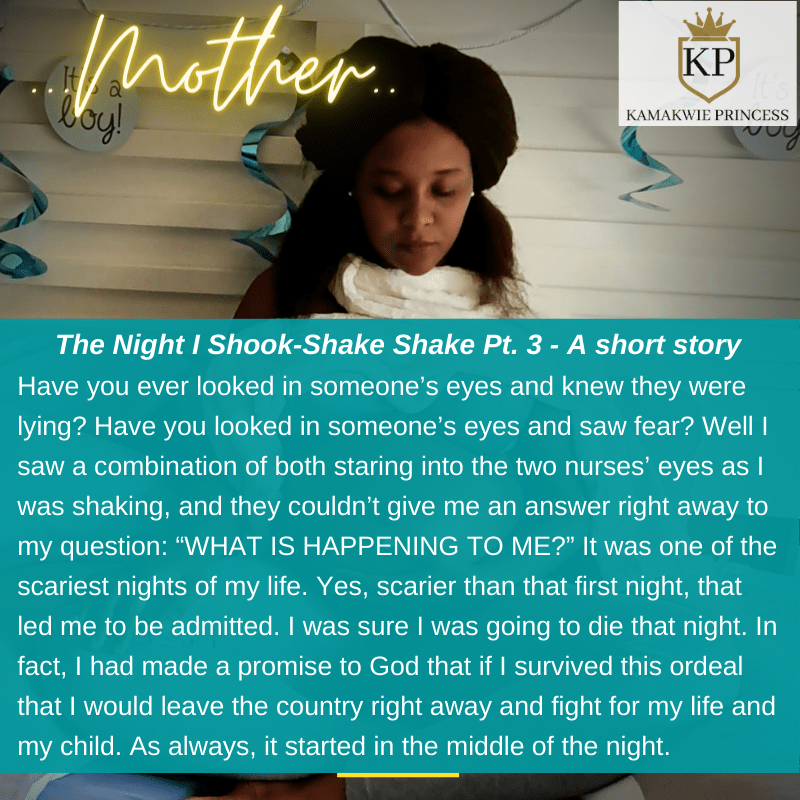After the first hospital visit (Read Shake Shake pt 1 & 2), I was still not better by noon of that very day and decided to go to the hospital I initially wanted to go to. While there they took blood and other samples and did scans. I was told that I had a serious infection and was immediately put on antibiotics and the scans showed that my left kidney had major kidney stones. This is the story of one of the nights I was in the hospital for that one week. A summary will follow after these.